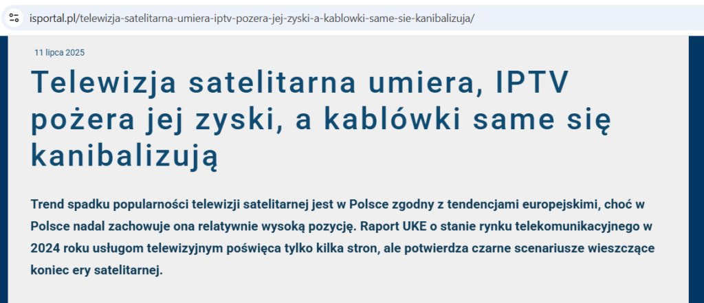 Dyskusję tę odbywaliśmy wielokrotnie – czy operatorzy płatnej telewizji, doprowadzając do polskich domów szybki internet, nie zabijają swojego core-biznesu, czyli dostarczania usług telewizyjnych? Na koniec dnia nadal większość z nas na Vectrę czy Toyę mówi: płatna telewizja, albo telewizja kablowa. Rzadziej nazywamy ich dostarczycielami internetu i innych usług przy okazji 🙂